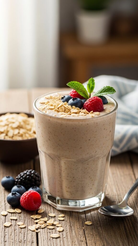 Oats provide slow-digesting carbs that stabilize blood sugar. This smoothie is ideal if you usually feel hungry mid-morning.