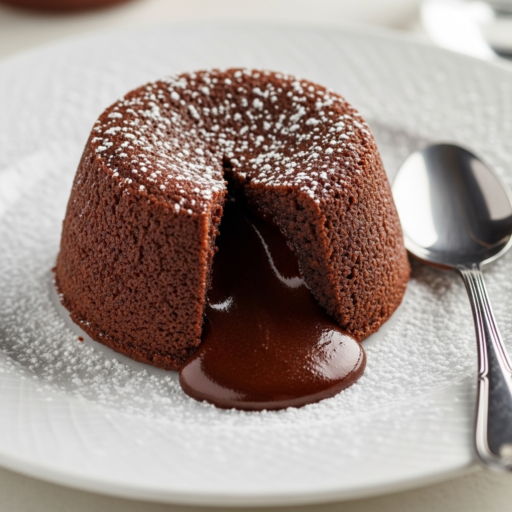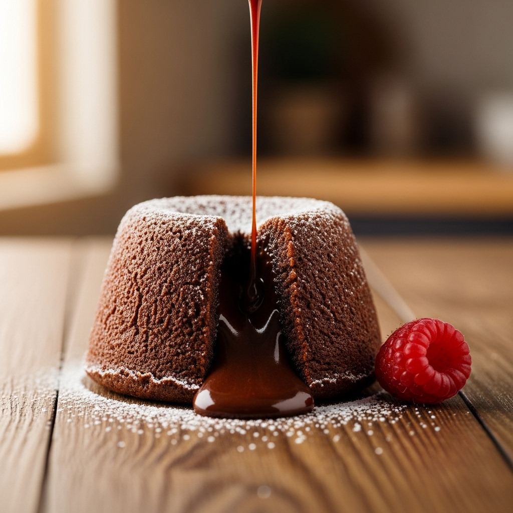 A perfect chocolate lava cake needs confidence. I trust the process. I remove the cake when the top looks set but still soft.