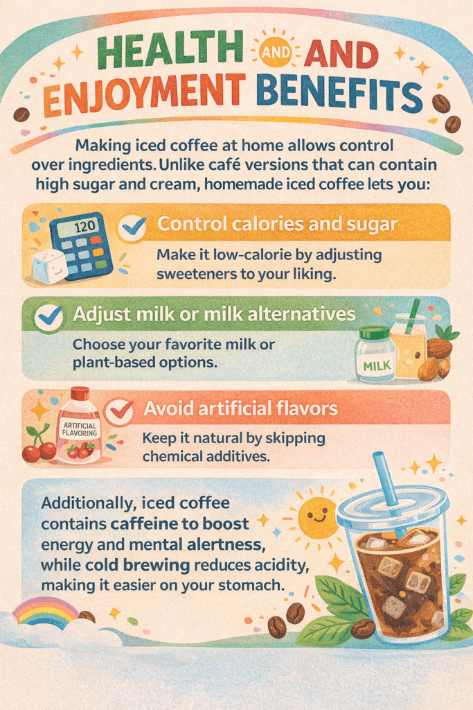 Making iced coffee at home allows control over ingredients. Unlike café versions that can contain high sugar and cream, homemade iced coffee lets you: