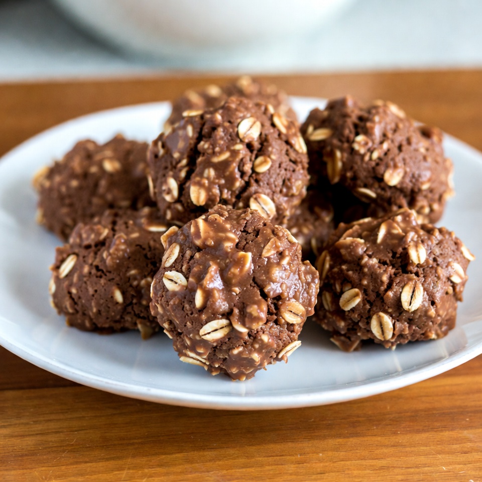 These use oats, peanut butter, and cocoa. They set at room temperature. They work fast.